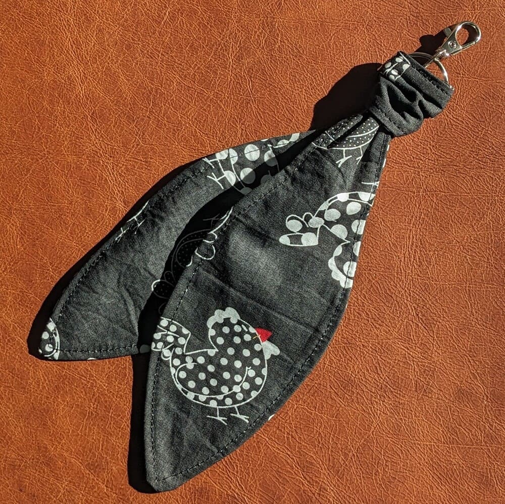Découvrez l’authenticité et l’artisanat breton avec ce bijou de sac, qui peut faire aussi office de porte-clé en tissu « Poulettes ». Il saura habiller délicatement votre sac, accroché à l’une de ses anses. Il sera idéal aussi pour la clé du poulailler.