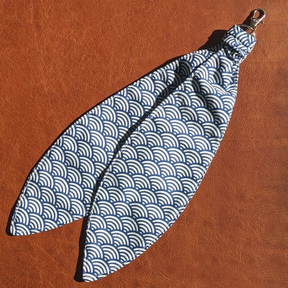 Ajoutez une touche unique, tendance et artisanale, à votre sac à main, ou à vos clés. Motif « vague seigaiha bleu et blanc ». Fabriqué à la main dans le Golfe du Morbihan, il allie originalité et mode.