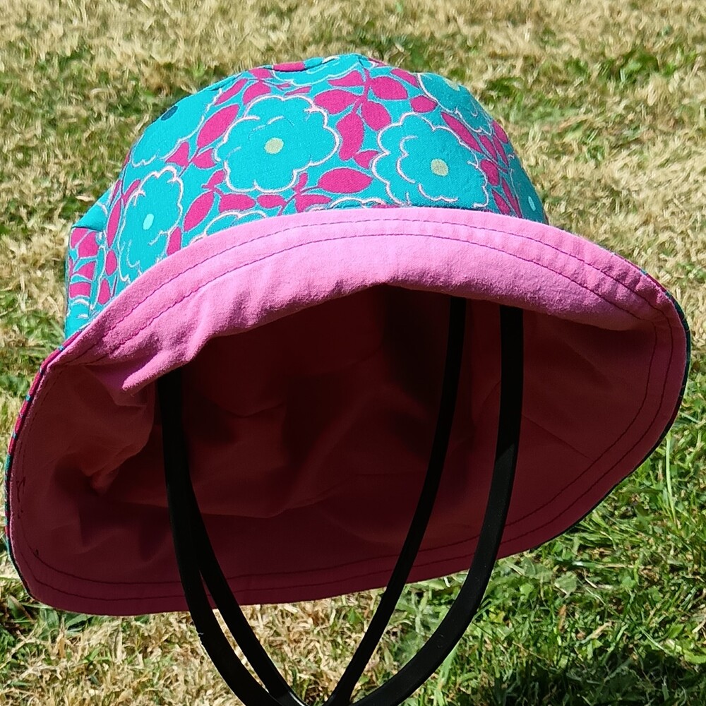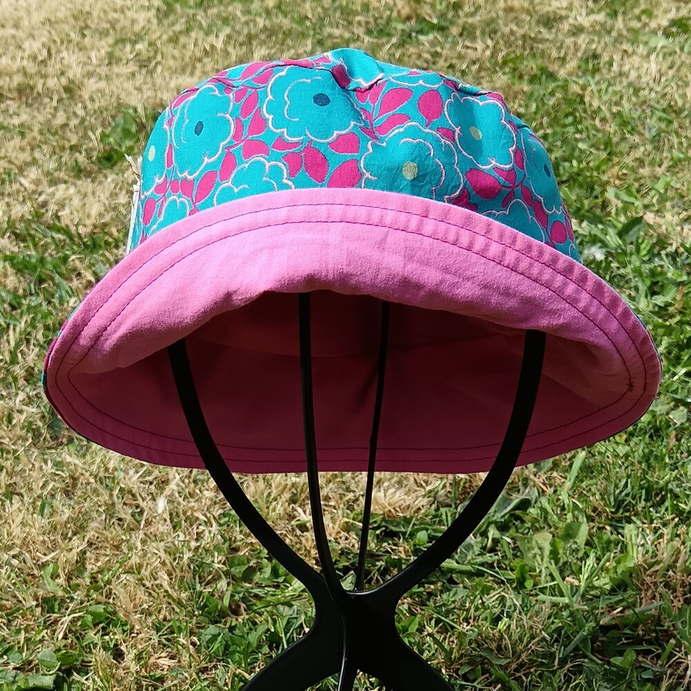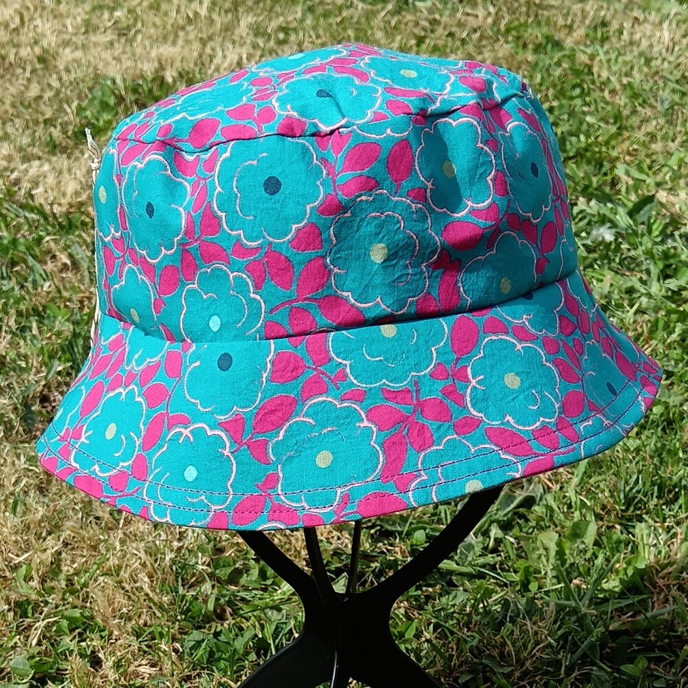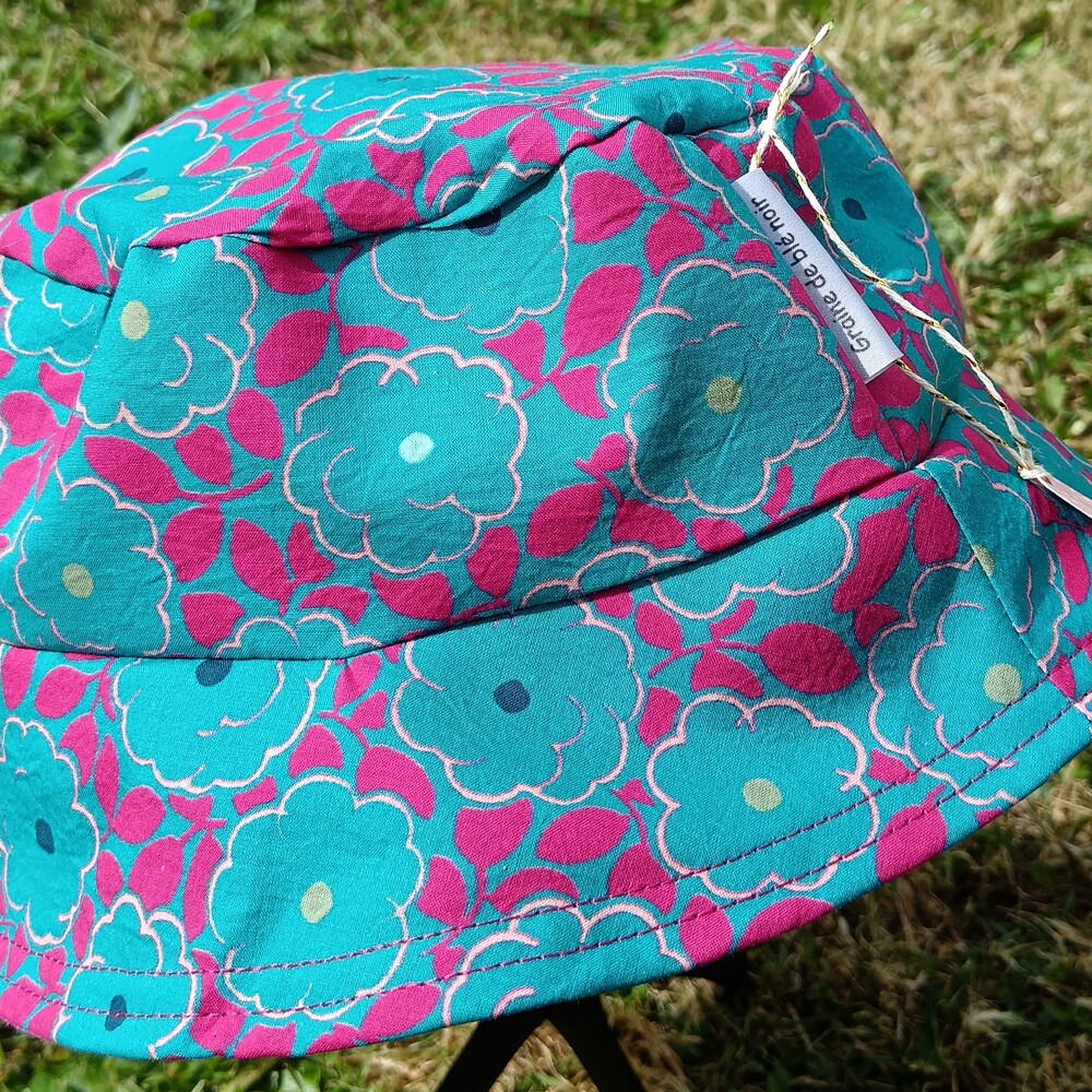 🔸 Côté imprimé : fleurs turquoise et feuilles fuchsia sur fond turquoise