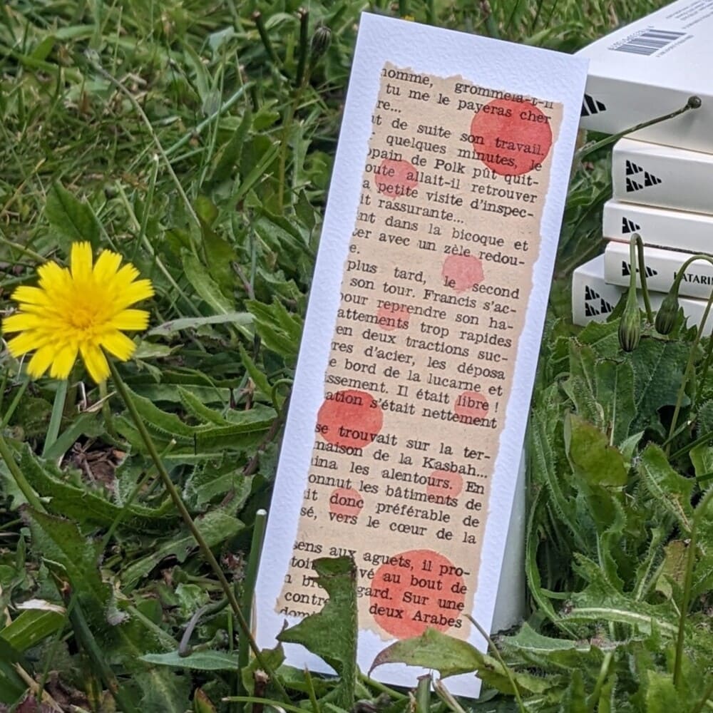 - Matériaux : Papier aquarelle 300 g/m², page d’un ancien polar, aquarelle de qualité