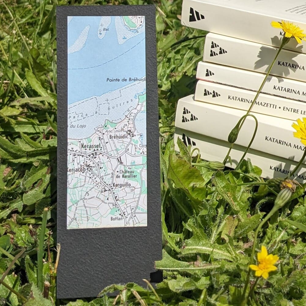 Découvrez notre marque-page Bréhuidic. Bréhuidic fait partie de la commune de Sarzeau, sur la presqu’île de Rhuys. Chaque marque-page est une pièce unique, découpé dans une ancienne carte routière, qui vous rappellera des souvenirs.