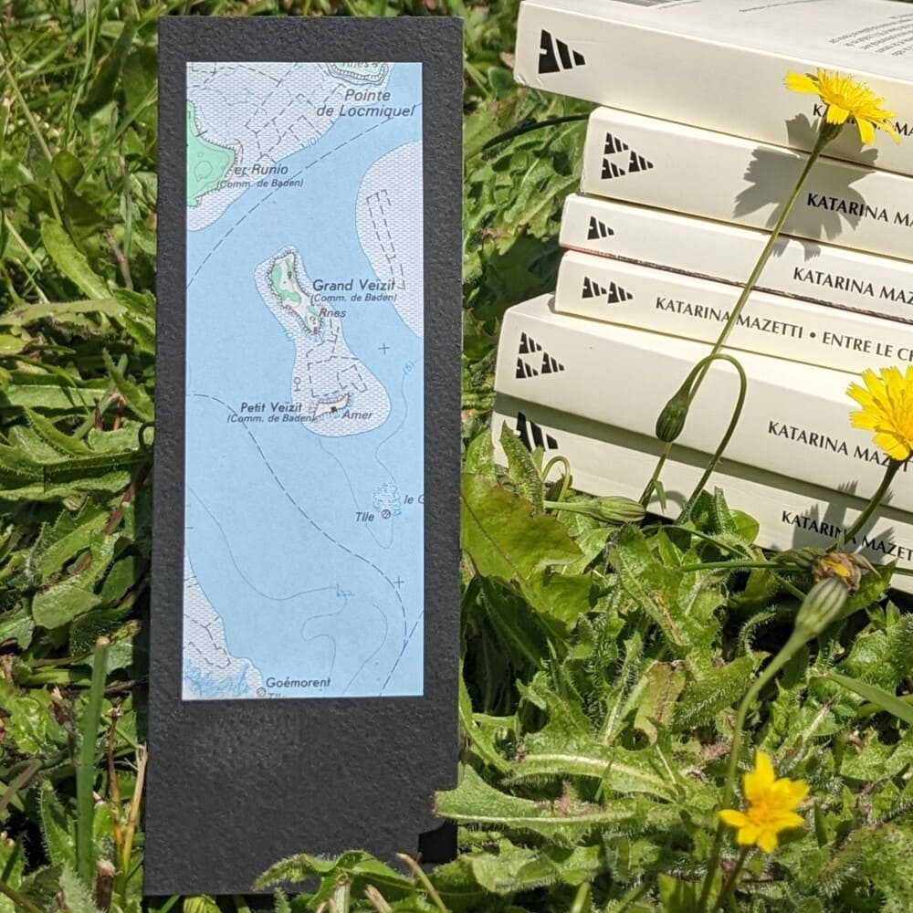 Découvrez notre marque-page Veizit. Le Grand Veizit et le Petit Veizit sous des îles du Golfe du Morbihan, et font partie de la commune de Baden. Chaque marque-page est une pièce unique, découpé dans une ancienne carte routière, qui vous rappellera des souvenirs.