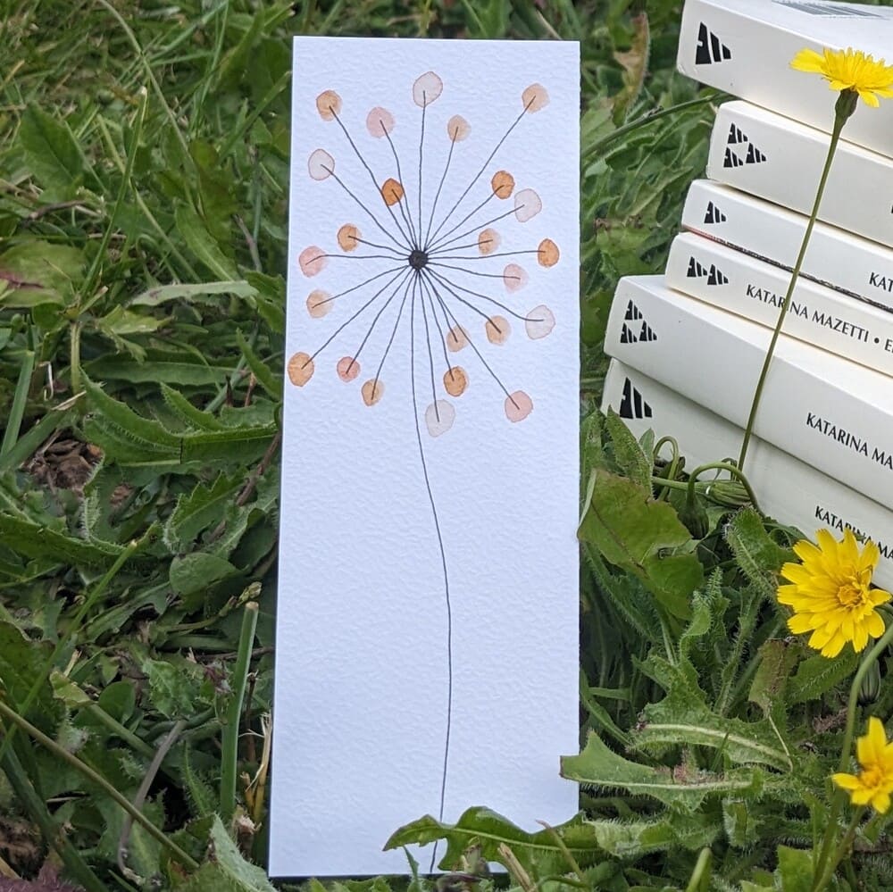 Marque-page Feu d’artifice orangé. Chaque marque-page est une pièce unique, réalisée dans un camaïeu à l’aquarelle et à l’encre.