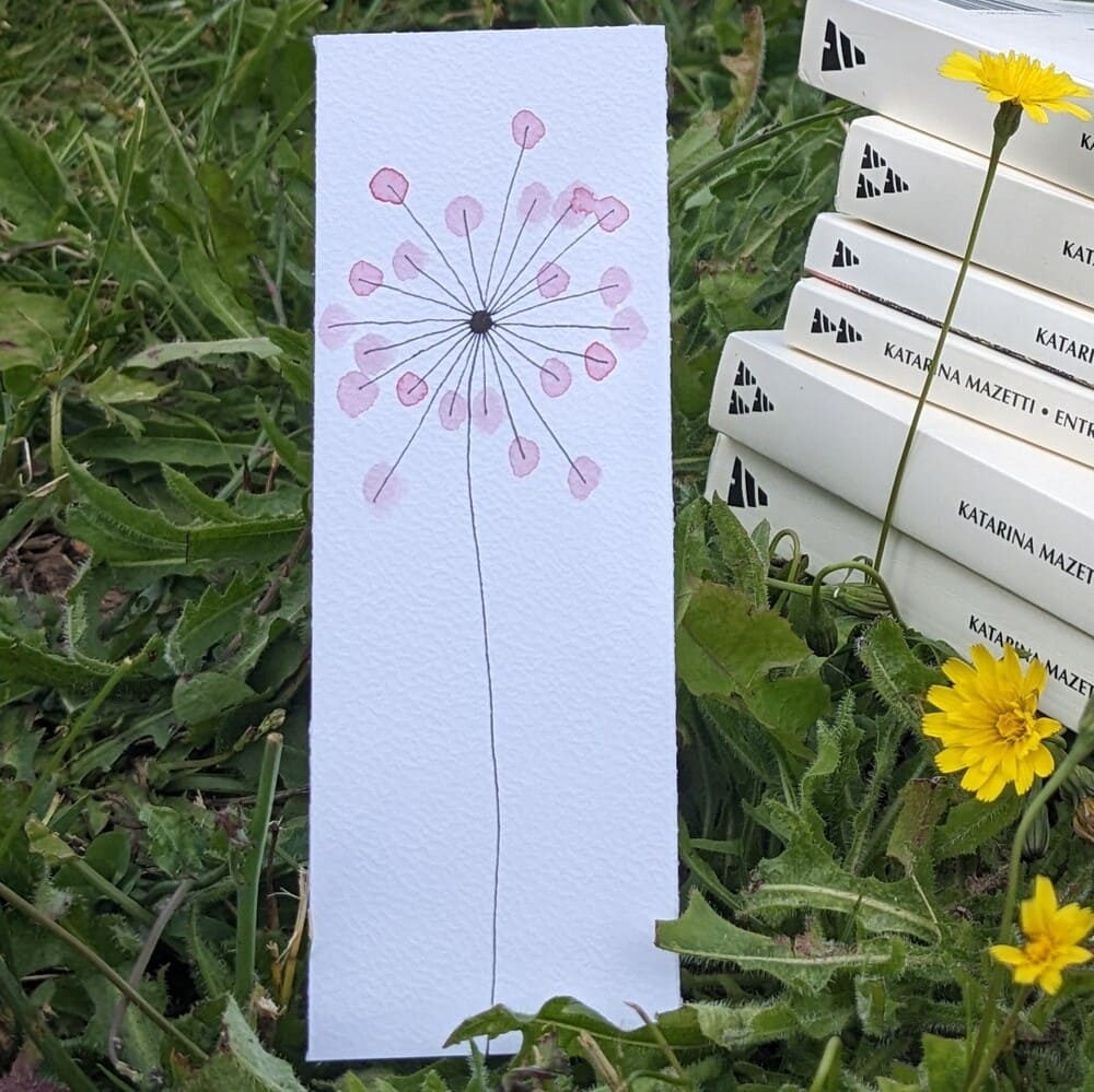 Marque-page Feu d’artifice rose. Chaque marque-page est une pièce unique, réalisée dans un camaïeu joyeux à l’aquarelle.